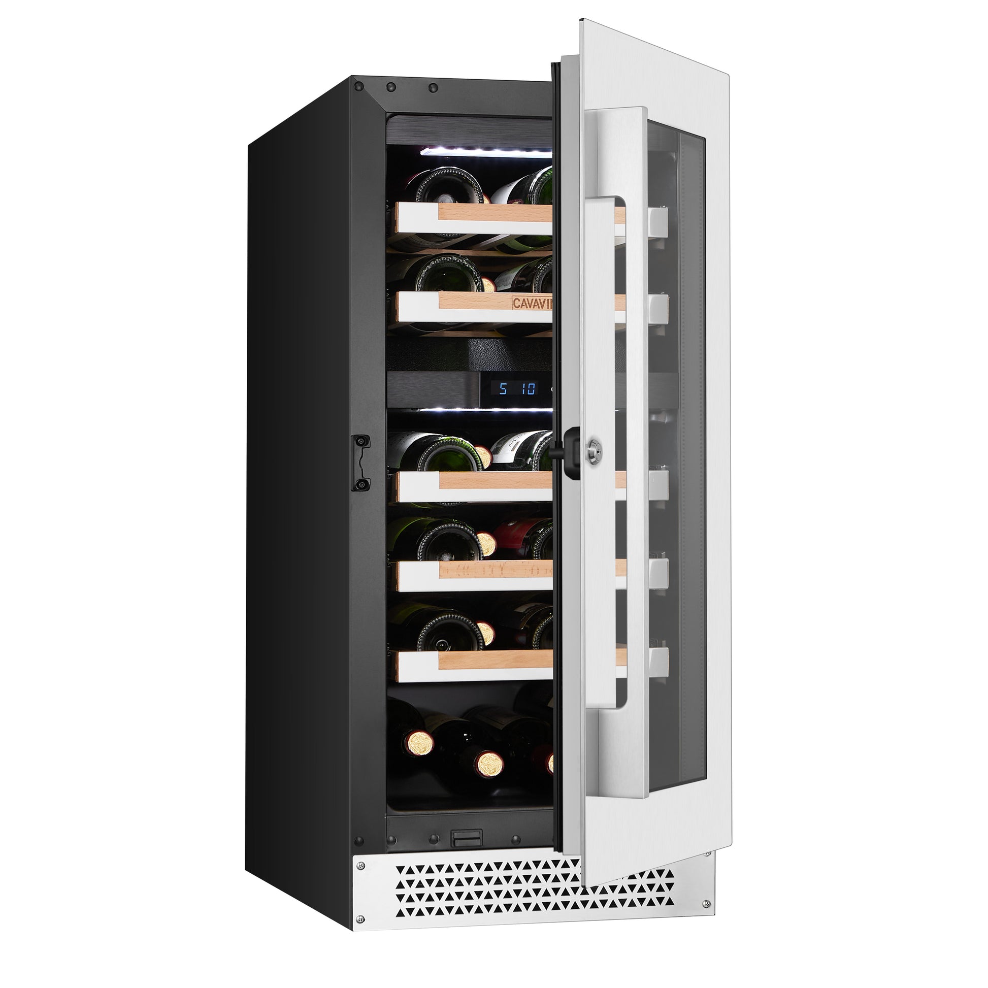 Glass Door: Double-pane Low-E glass protects wine from UV light and temperature fluctuations.